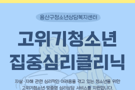 안녕하세요.용산구청소년상담복지센터에서 진행하는 ‘종합심리평가’ 안..